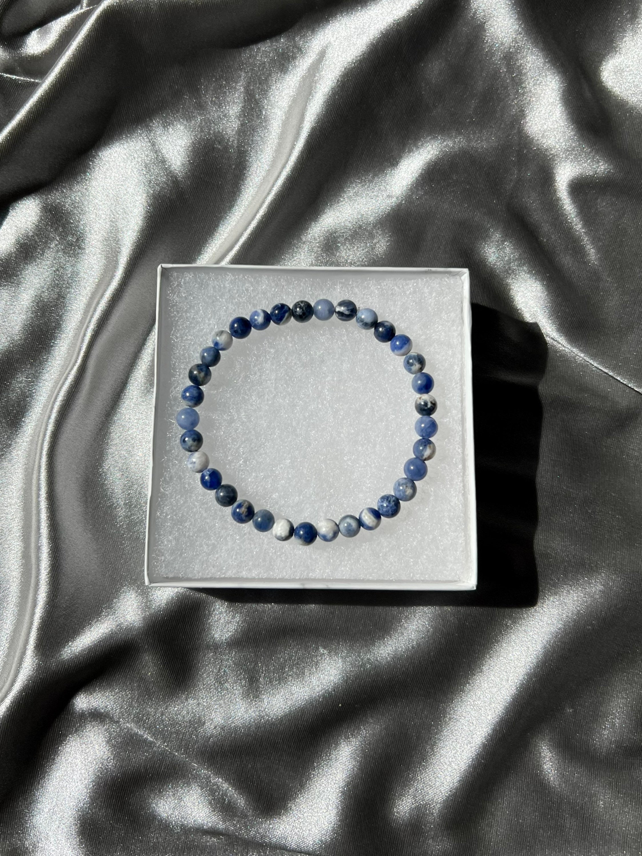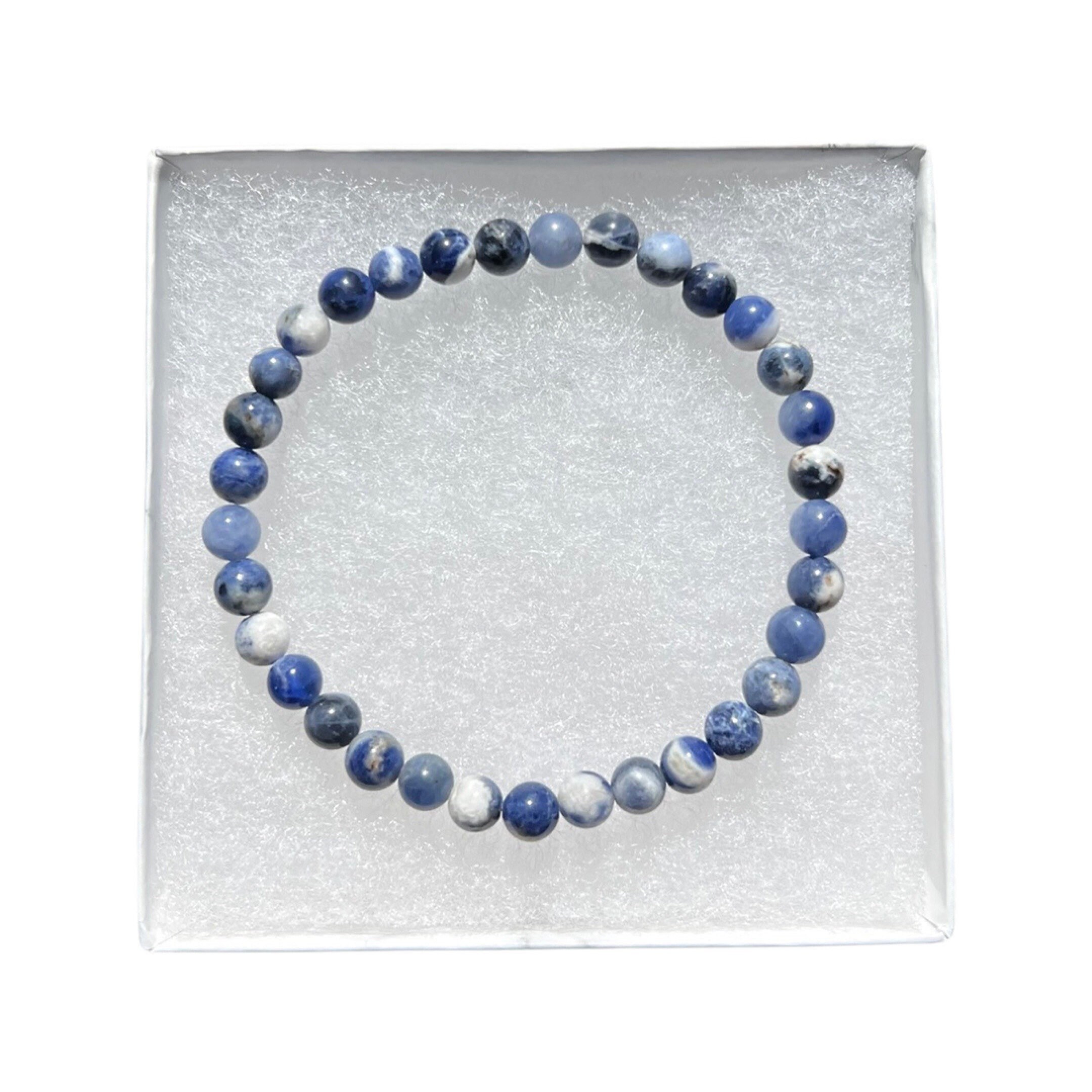 Handmade sodalite crystal stretch bracelet. Using natural stones acquired from my local metaphysical shops and other vetted sources.