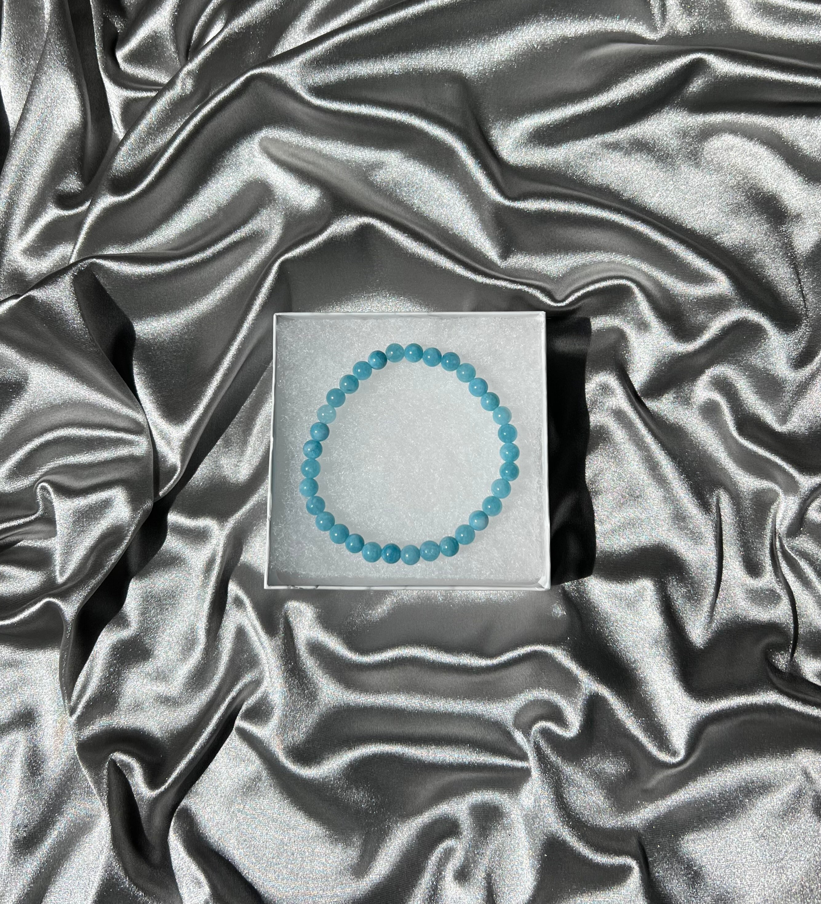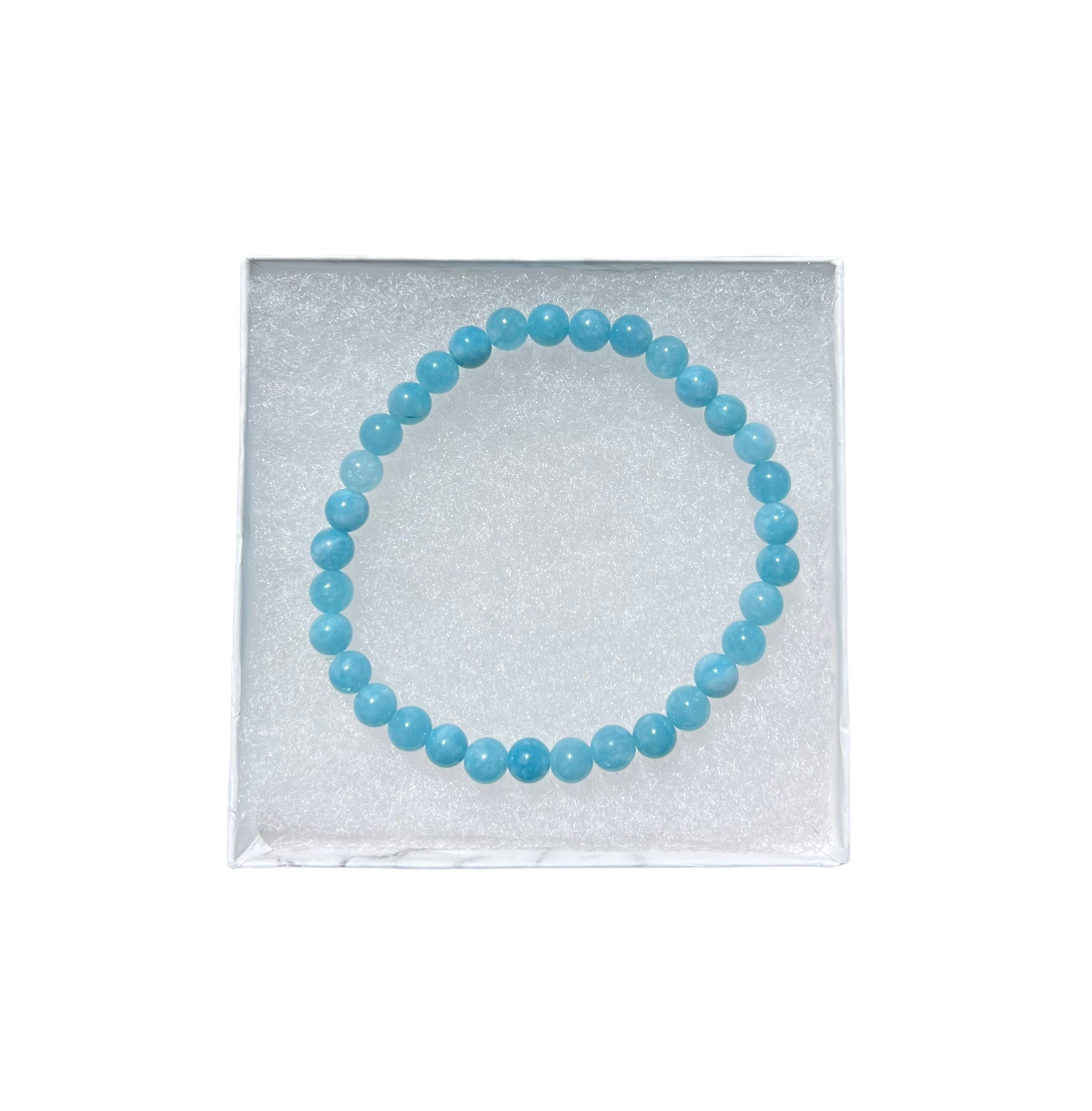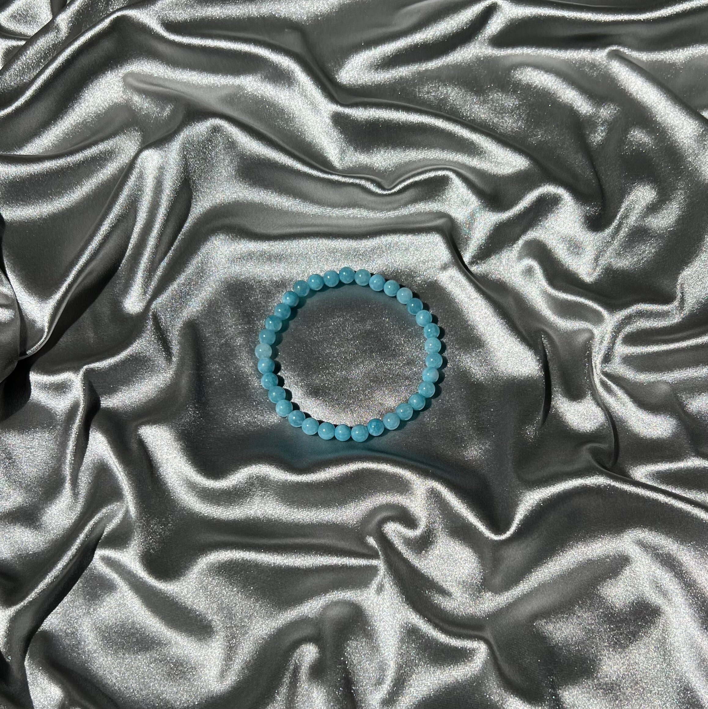 Handmade aquamarine crystal stretch bracelet made with natural stone beads acquired from my local metaphysical shops and other vetted sources.