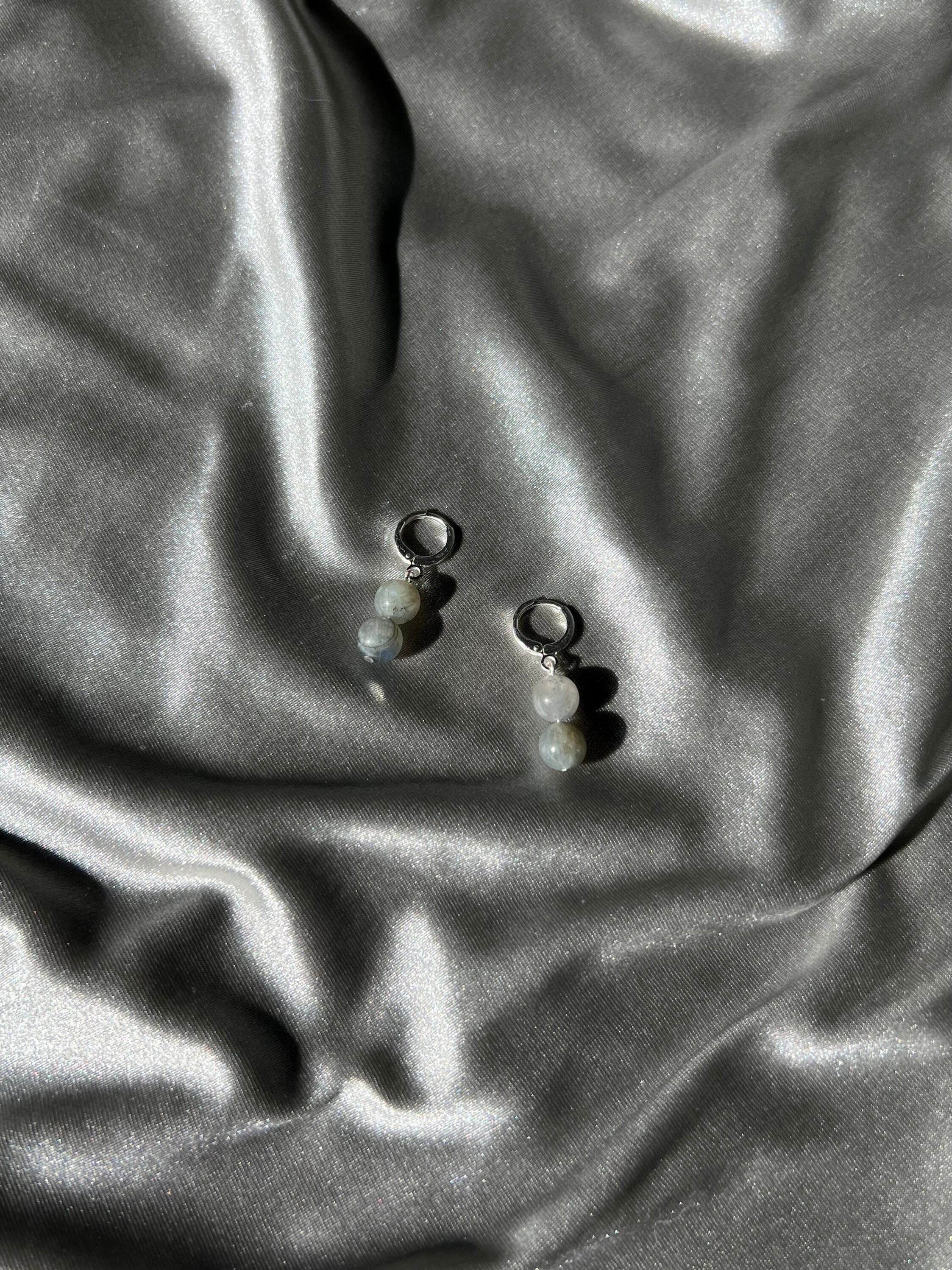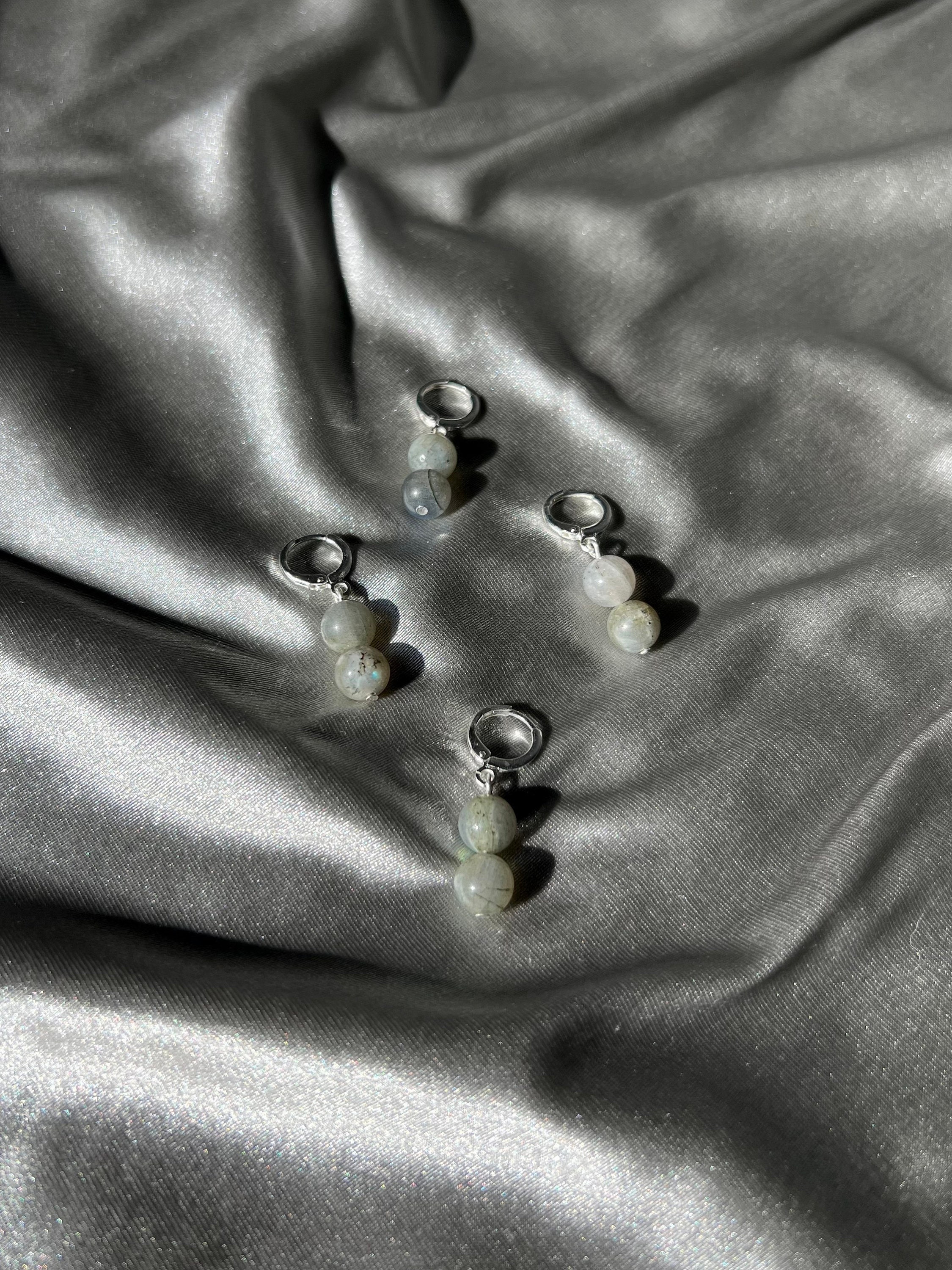 Handmade labradorite crystal huggie earrings. Using natural stones acquired from my local metaphysical shops and other vetted sources.